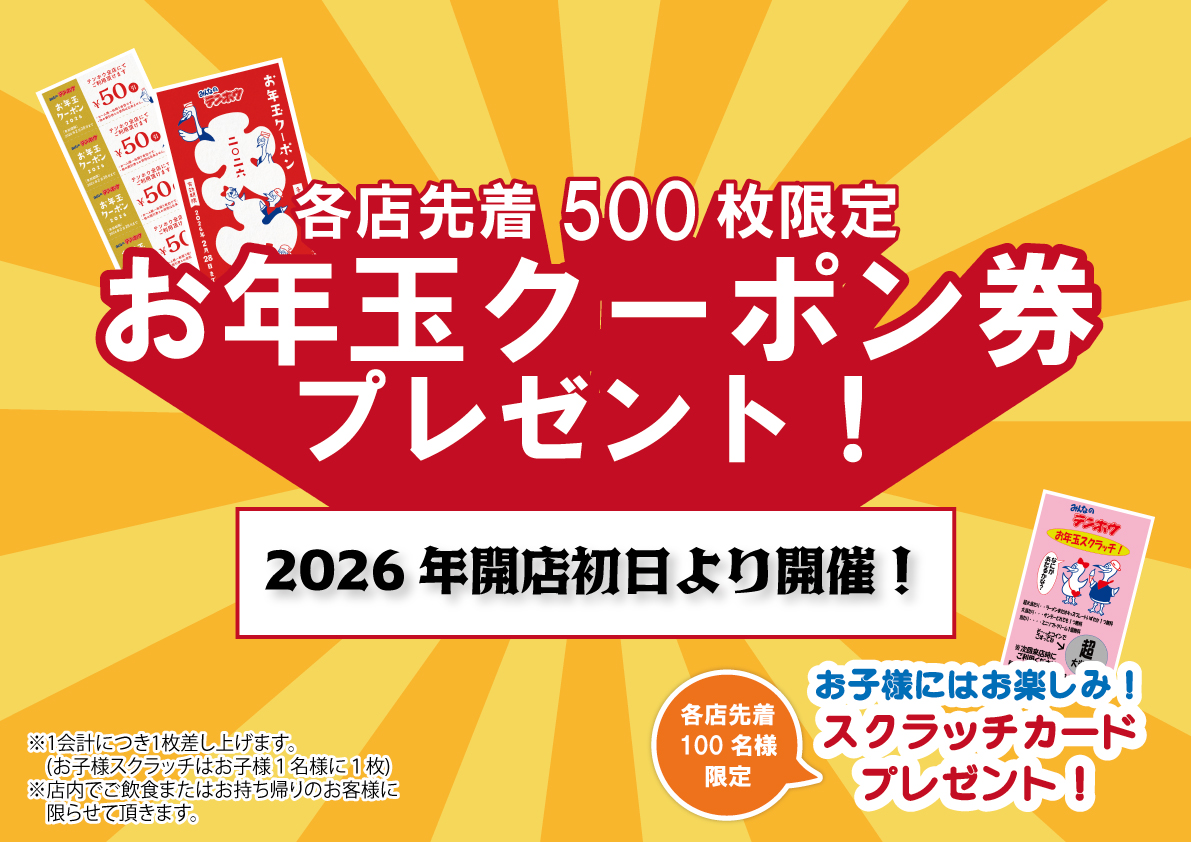年明けの恒例イベントとなりました!ちょっと嬉しい【お年玉クーポン!】
