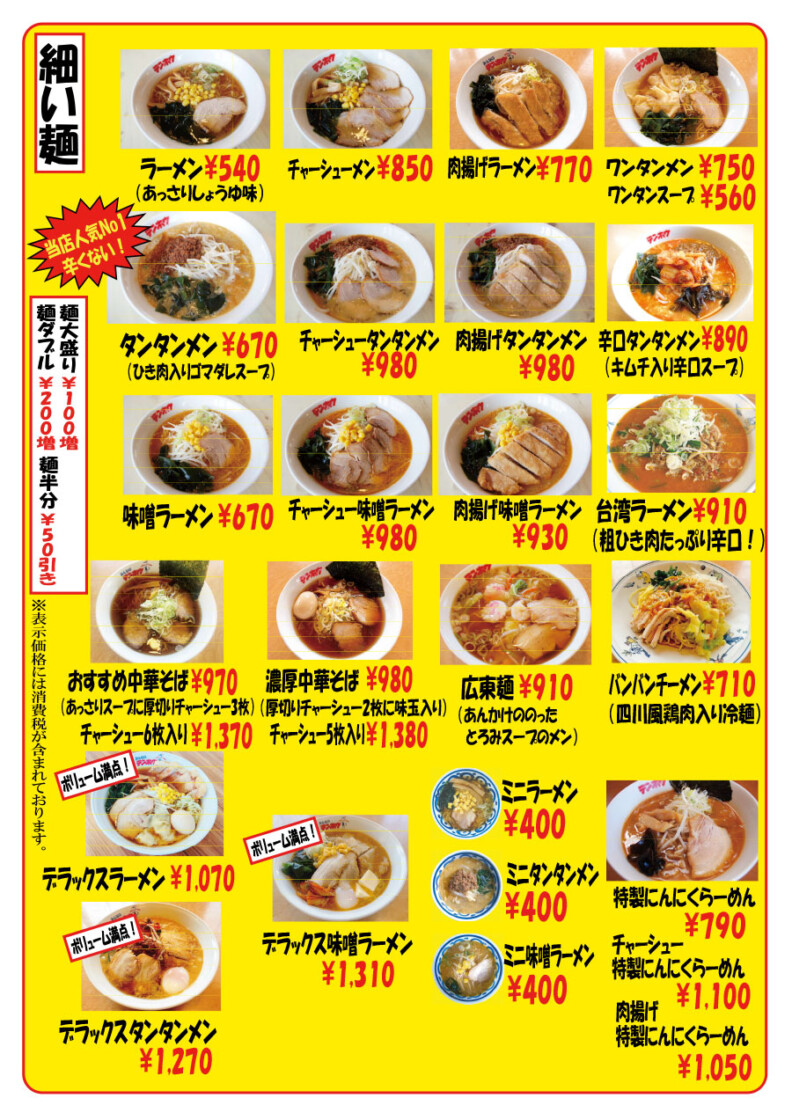 小さいお店なので調理提供の速さと回転重視!ご注文後なるべくお待たせしないように心がけています!子供さんが一緒でもラーメンを楽しめるように子供用のイスもご用意してあります。