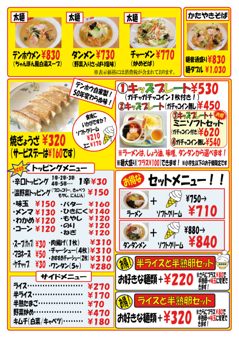 諏訪市中洲福島周辺で美味しいラーメンとぎょうざをお探しなら、長野県生まれのラーメンチェーンのテンホウへ!